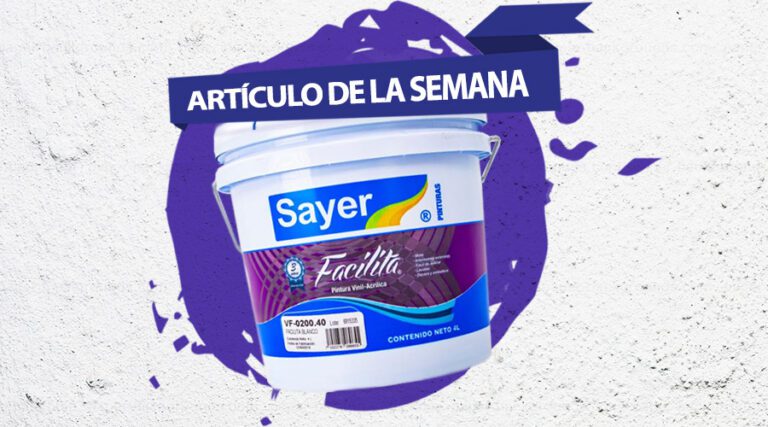 Galón pintura blanca Sayer Facilita. Pintura Vinil Acrílica a base agua con acabado mate para todo tipo de interiores y exteriores. Buen poder cubriente, adhiere sobre yeso,